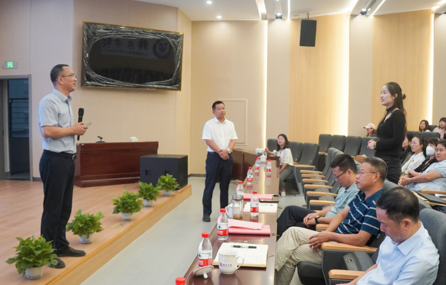 刘义保从“人才培养OBE理念的建立、培养目标的确立、毕业要求的制定、课程体系的建立、教在学中”等五个方面深入阐述了OBE理念的逻辑框架、核心思想及其在专业建设和课程教学中的具体应用。同时,结合生动的课堂教学案例,明确了教师作为课堂教学第一责任人的重要性,鼓励广大青年教师要做好“三站三清”,坚持寓教于学、寓教于研、精益求精、创新育人。