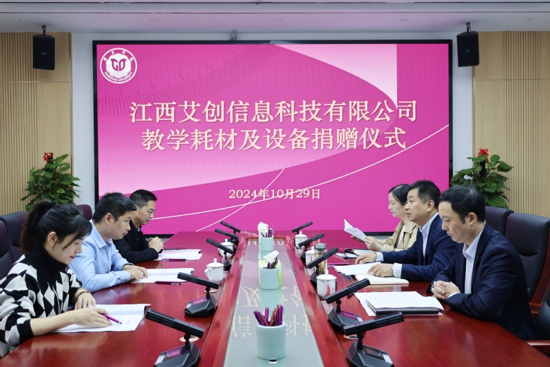 10月29日上午,江西艾创信息科技有限公司向我校捐赠价值30余万元教学耗材及设备,捐赠仪式在东临校区明德楼举行。校党委副书记、校长刘云海出席,江西艾创信息科技有限公司总经理许超及学校相关单位负责同志参加。