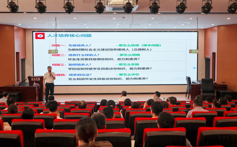 为进一步深化本科教育教学改革,全面提高人才培养质量,根据学校教学工作安排,2025年5月13日下午,我校在经管楼报告厅开展“2025版本科专业人才培养方案修订”全校性教研活动。本次教研活动分为两个阶段,第一阶段副校长李勋做题为《基于OBE的专业人才培养方案构建与落实》的专题报告,第二阶段教务处对2025版人才培养方案指导性意见进行解读,并组织参会人员开展交流研讨。各学院行政负责人、系主任、专业负责人、骨干教师、教学秘书及教务处全体教师等100余人参加。