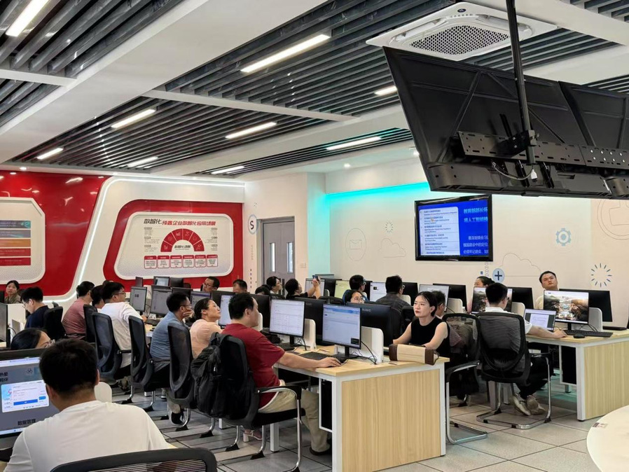 下午,“AI赋能教学”工作坊在经管楼分组进行。工作坊采用“现场演示+教师实操”的模式,培训师首先全景式演示了AI工具辅助下的教学设计、资源生成、课堂互动、智能评价等核心教学环节。随后教师们上机动手实践,体验AI工具在教学设计、资源生成、互动活动及学情分析等环节的应用,现场气氛热烈。