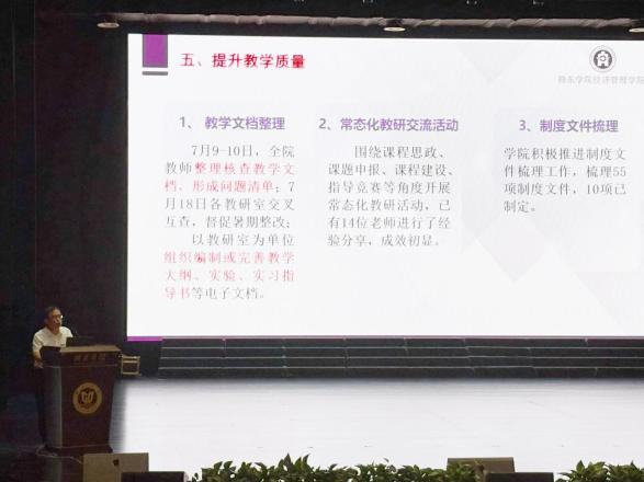 会上,评建办(教务处)、人事处、计划财务处、后勤与保卫管理处等部门,各教学单位分别就本单位暑期评建重点工作开展情况、存在问题及下一步工作计划作了详细汇报。